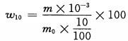 汞的含量以質(zhì)量分數(shù)W10計,數(shù)值以%表示,按式(11)計算: