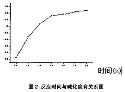 聚合時(shí)間對(duì)聚合硫酸鐵的合成有較大的影響,反應(yīng)時(shí)間與堿化度有如下關(guān)系,如圖2所示。反應(yīng)時(shí)間太短,未反應(yīng)完的濃硝酸受熱分解成NO2大量溶于產(chǎn)品中,將影響聚合硫酸鐵的堿化度。但當(dāng)反應(yīng)時(shí)間為超過3h時(shí),對(duì)亞鐵離子含量的降低和COD的去除率及脫色率的提高已不明顯,繼續(xù)延長反應(yīng)時(shí)間只能增加能耗及降低生產(chǎn)效率。綜合考慮,恰當(dāng)?shù)木酆戏磻?yīng)時(shí)間為3h左右。