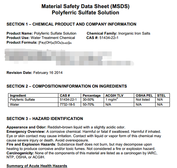 聚合硫酸鐵MSDS化學(xué)品安全技術(shù)說明書
